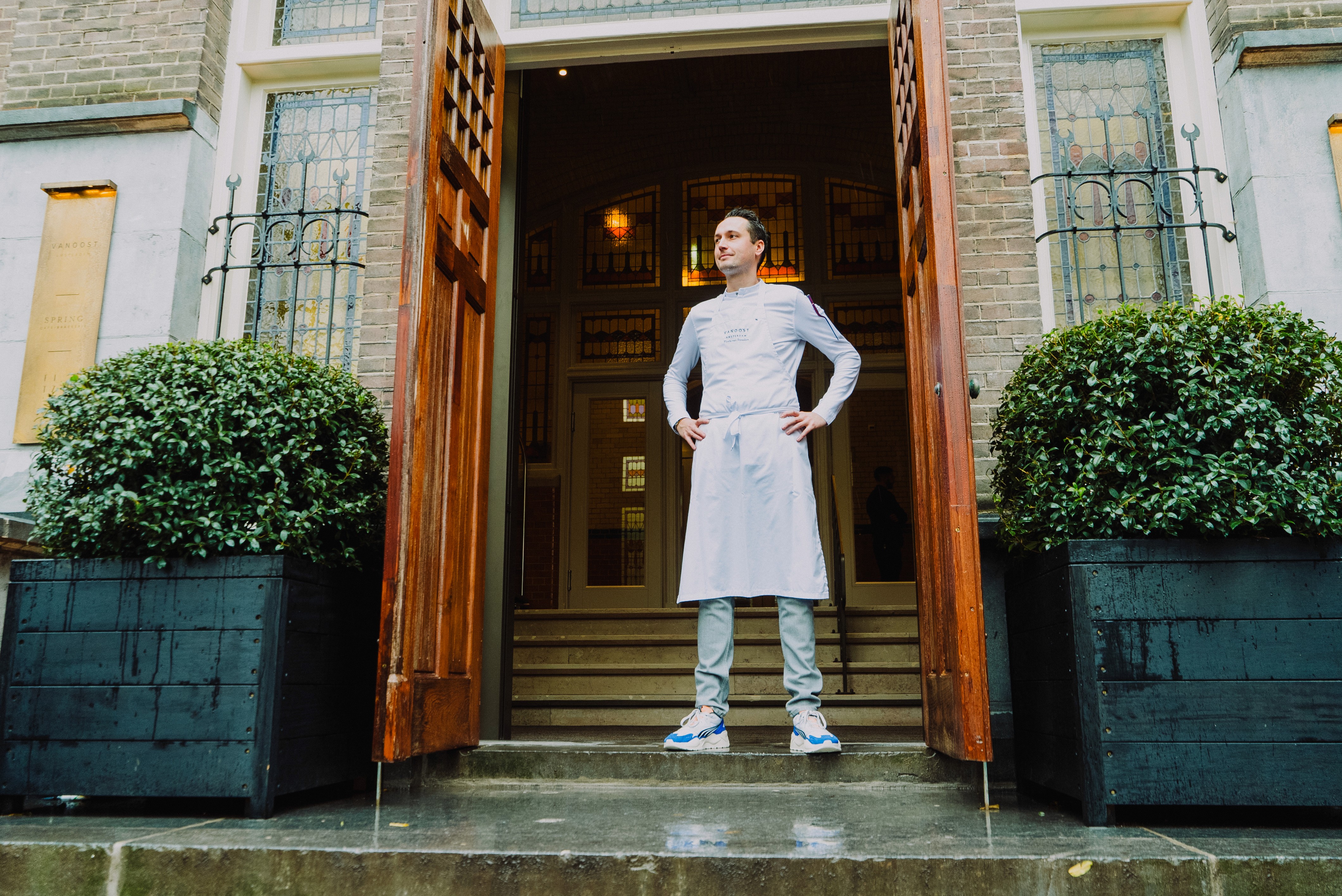 Midden in het Amsterdamse Oosterpark ligt restaurant VanOost, waar New Chef on the Block Floris van Straalen aan het roer staat. Hier kijkt hij op een vernieuwende manier naar fine dining, met een sterke focus op seizoensgebonden koken en beleving. Bij VanOost draait het niet alleen om wat er op het bord ligt, maar om de volledige ervaring: van binnenkomst via de bar tot de persoonlijke aandacht aan de Chef’s Table. Floris is een chef van de details, iets wat zichtbaar is in het interieur, het servies en zijn verfijnde gerechten. Floris staat bekend om zijn pure en moderne kookstijl, waarin zijn connectie met de zee duidelijk terugkomt. Zijn gerechten zijn strak en zonder overdaad, maar altijd met een uitgesproken karakter. Hij zoekt voortdurend naar een eigenzinnige twist en laat zich inspireren door het pand en de omgeving, waardoor zijn keuken een herkenbare signatuur krijgt. Het product staat altijd centraal, met een subtiel maar krachtig smaakpalet als resultaat. Bij VanOost komen verschillende culinaire invloeden samen, waaronder die uit Zeeland, waar Floris zijn carrière begon. Het team wordt actief betrokken bij alle facetten van het restaurant, van bezoeken aan oesterkwekerijen tot het verdiepen in herkomst en productkennis. Zo kunnen zowel keuken als bediening het verhaal achter elk gerecht delen en gasten meenemen in de visie van het restaurant. Respect voor natuur, seizoen en omgeving vormt daarbij een essentieel uitgangspunt. De open keuken versterkt de teamgeest en zorgt ervoor dat keuken en bediening als één geheel opereren. Er is ruimte voor creativiteit en eigen inbreng, wat bijdraagt aan een positieve werksfeer. Gerechten ontstaan vanuit een verhaal en een bewuste omgang met producten. Zo worden bij een gerecht met Nederlandse eend meerdere bereidingen van hetzelfde dier geserveerd, en combineert Floris internationale invloeden in creaties als kingkrab met unagi-lak en radijs. Het doel is om gasten culinair te verrassen en mee te nemen op reis, terwijl comfort en aandacht altijd voorop blijven staan.